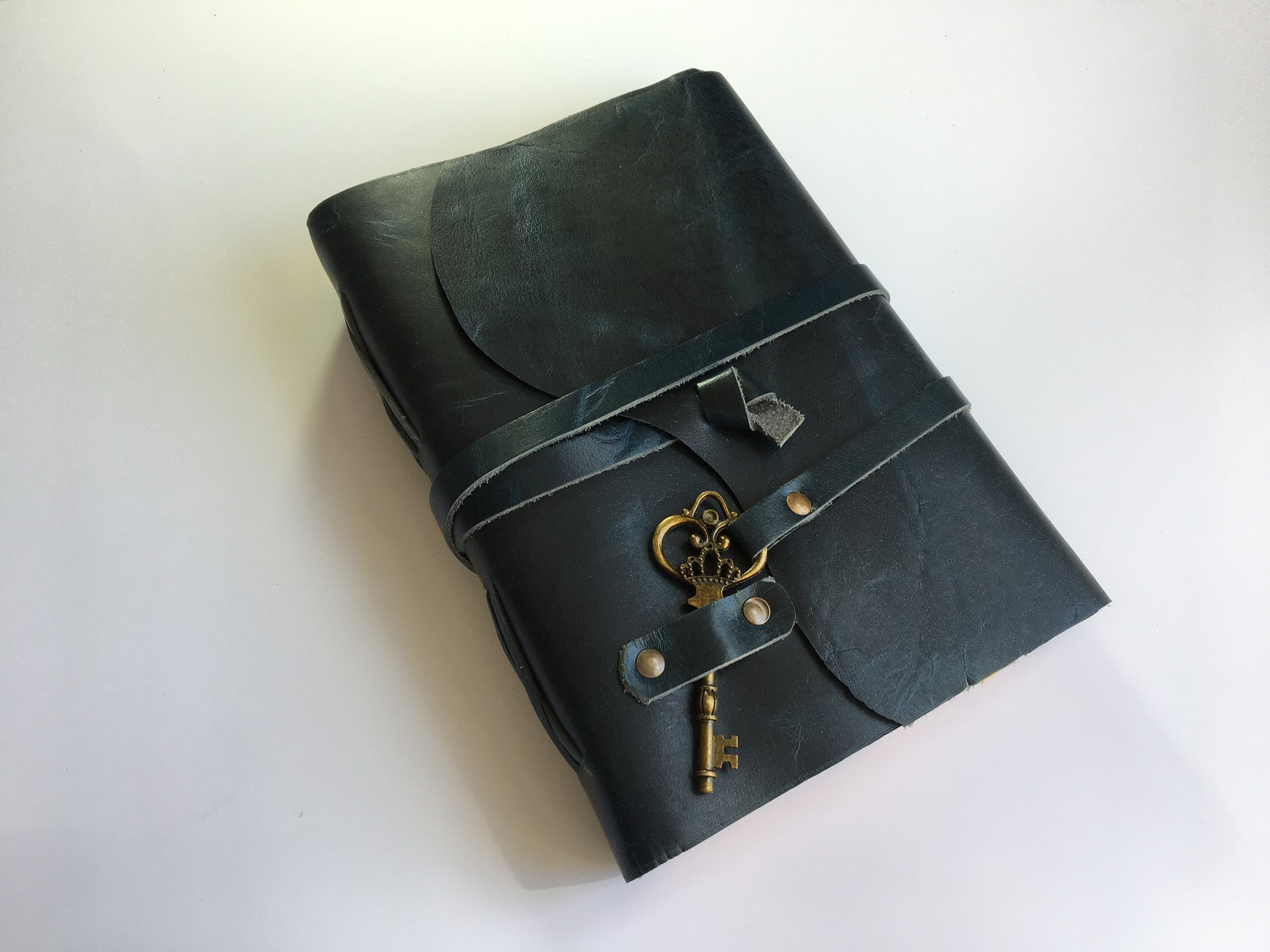 Wrinkle Patina Leather Journal- Handcrafted- Deep Ocean