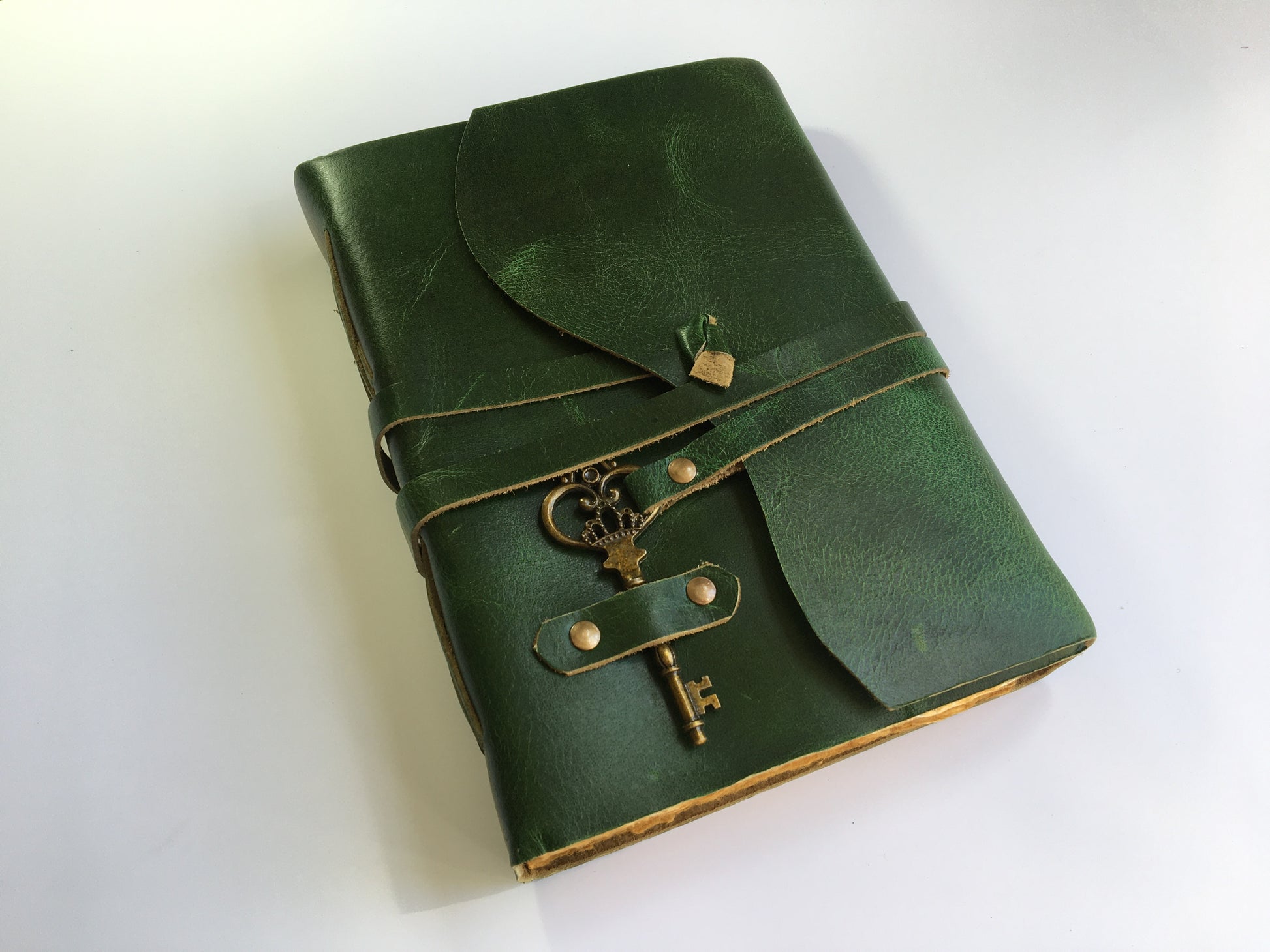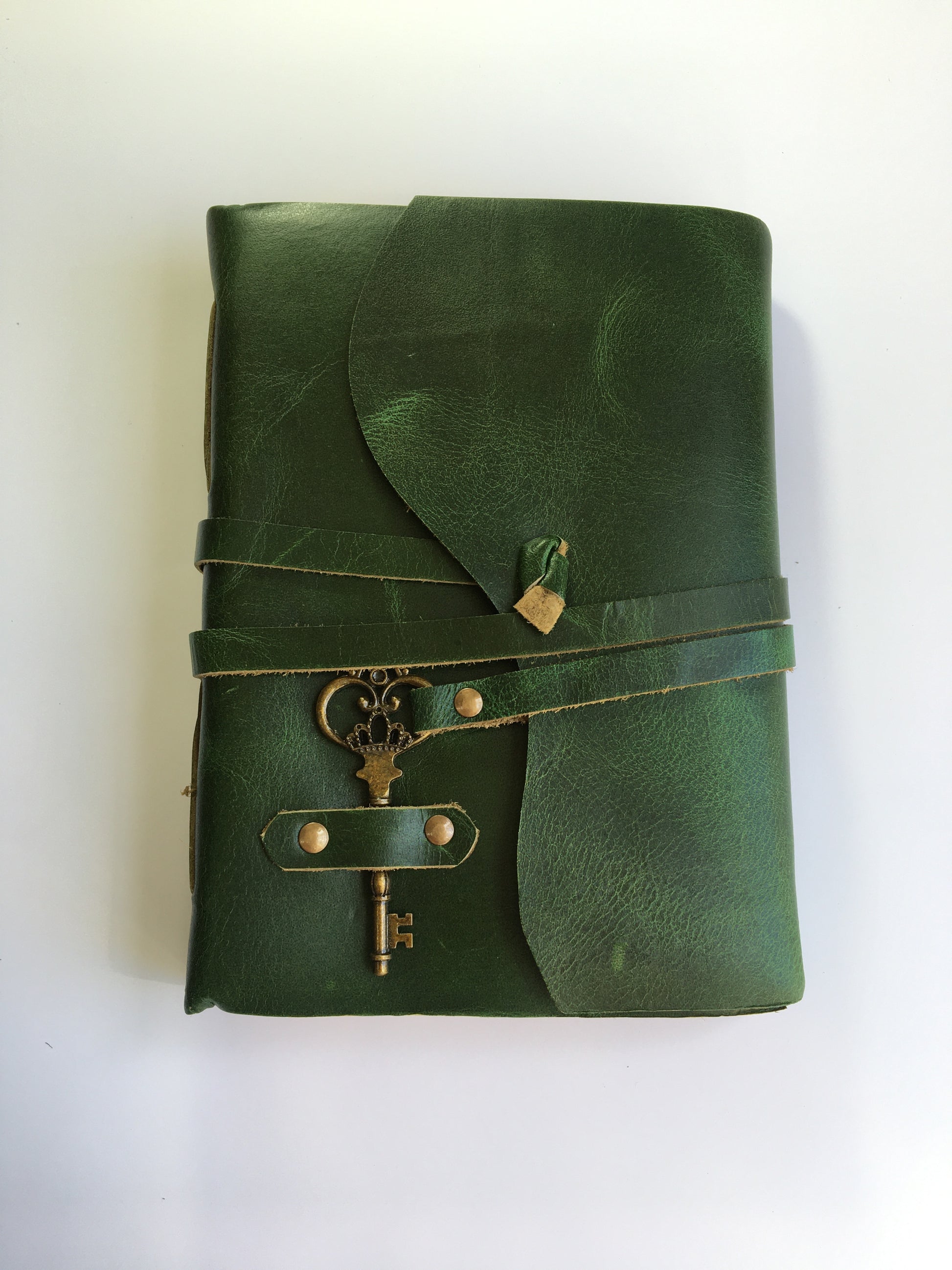 Wrinkle Patina Leather Journal- Handcrafted- Jade Green